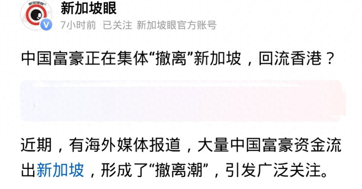 看到一篇新加坡新闻报道,中国富豪在撤离新加坡,回流香港?