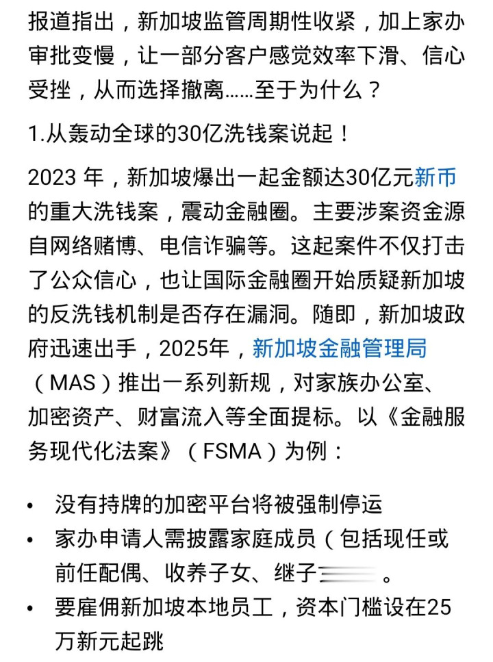 原因就是新加坡对外部投资的很多政策收紧了,特别是对金融行业监管变严了。